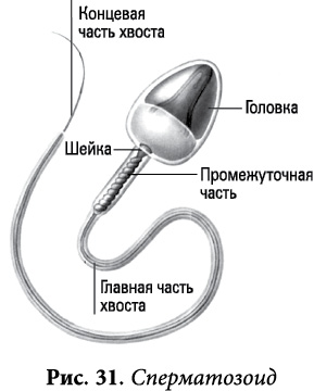 Концевая конусовидная часть хвоста обеспечивает бичеобразные движения сперматозоида.