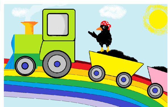 – Ох, – ответило на это солнышко, – она почернела от угольной крошки и пыли. Это гномы на паровозике перевозили по радуге уголь в соседний лес для фей и эльфов. Да только один вагончик перевернулся, уголь рассыпался и испачкал её.