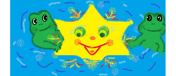 Упала как-то ночью с неба звёздочка. И попала она в пруд, где жила жаба и много-много маленьких лягушат. Светло стало в пруду, как днём. Обрадовались этому лягушата, запели весёлую песенку и разбудили жабу. Рассердилась тогда жаба, что ей спать мешают и спрятала звёздочку в камышах.