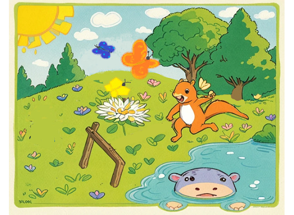 Говорит ему енот:«Эй, ленивый бегемот!Хватит без толку лежать,Выходи в лапту играть!»Отвечает бегемот:«Странный вы, лесной народ!Вам бы прыгать да скакать —Нет, чтоб в травке полежать!»