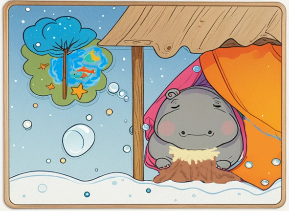 Бегемоту снилось лето:Там тепло и много света.Вот он удочку берётИ на озеро идёт.В небе солнышко сияет,Клёв удачный обещает.«Друг, вставай! Пойдём на лёд! —Вдруг услышал бегемот, —Посмотри, какой денёк!Собирайся на каток!»«Рыба вся моя! Не дам!», —Закричал гиппопотам.Закричал и вмиг проснулся —Сон ушёл и не вернулся!«Эх, – сказал ему енот, —Скоро уж зима пройдёт!