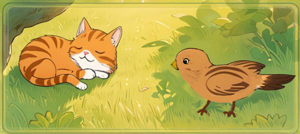 Воробей-воробушек,Тоненькие ножки,За тобой воробушекНаблюдает кошка.Глазки прикрывает,Будто сладко спит,А сама тихонечкоЗа тобой следит.Я ногою топну:«Ну-ка, кошка, брысь!Ты мне на воробушкаДаже не косись!»