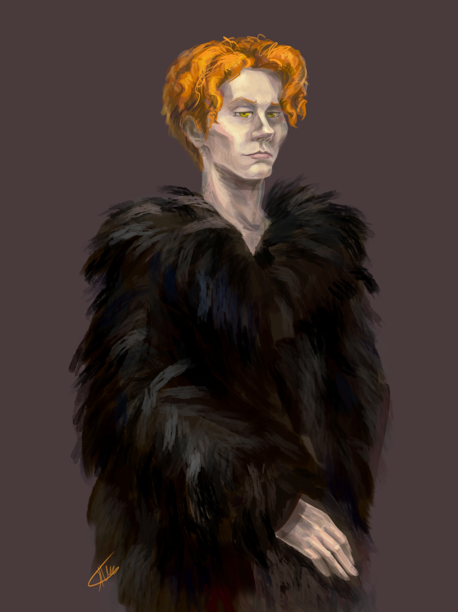 Это был конопатая копия Люцифера (точнее, «Люмьера»), только гораздо выше ростом, крепкого телосложения и с симпатичной мордашкой. Одет он был простовато: черная рубашка изо льна с приспущенными рукавами, бриджи и кожаные сапоги, которые носил каждый второй в Либрерии. Но пафосным дополнением к этому образу стала шуба из перьев вороны. Не хватало короны на его голове и двух слуг, махающих на него опахалами, для того, чтобы Катэль стал похож на императора или короля.