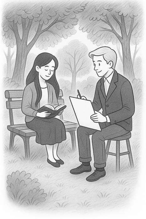The diary had a love story. Grandmother wrote about a young man. His name was Peter. He was an artist. Every day, Peter drew in the park.