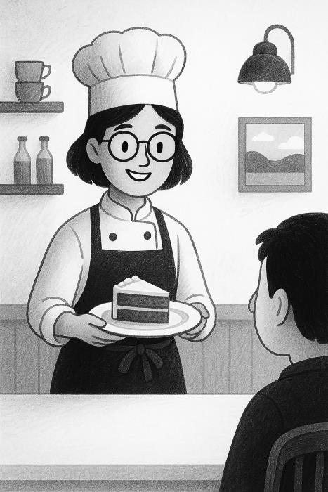 I went to cooking school. It was hard, but I worked hard. Now, I am a cook at a small cafe. I try to make good food. I say kind words to people every day. One kind word can change someone’s day.