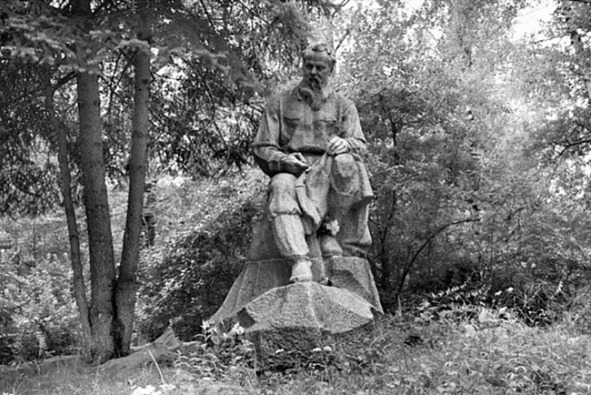 Памятник Павлу Петровичу Бажову, установлен 14 сентября 1961 года. Авторы: скульптор А. Ф. Степанова, архитектор М. Л. Минц. Екатеринбург, Ивановское кладбище