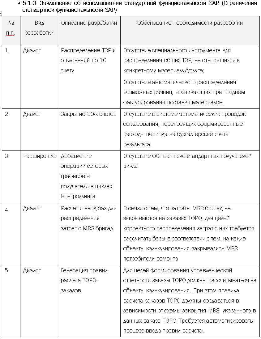 Заключение об использовании стандартной функциональности SAP (Ограничения стандартной функциональности SAP)