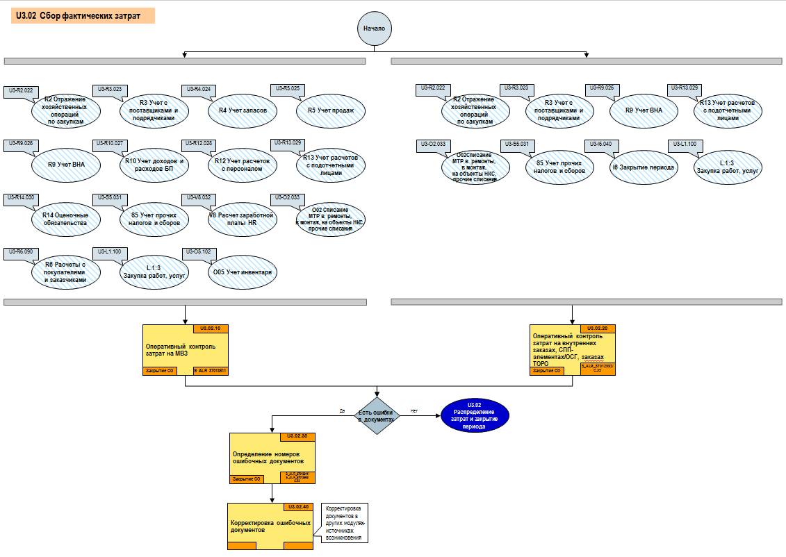Краткое описание бизнес-процесса U3 Учет прямых и косвенных затрат (Учет фактических затрат и алгоритм закрытия периода в Контроллинге)