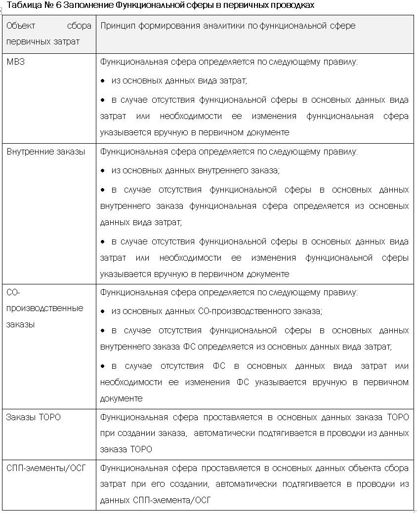 Функциональная сфера при проводке первичных затрат на объект сбора затрат определяется по следующему принципу (в порядке убывания приоритета):