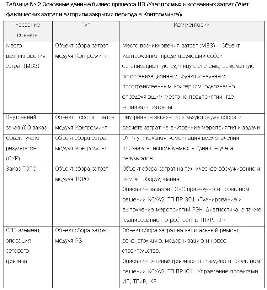 Результатом бизнес-процесса U3 "Учет прямых и косвенных затрат (Учет фактических затрат и алгоритм закрытия периода в Контроллинге)" является сбор фактических затрат, формирование фактической полной себестоимости работ, услуг, продуктов и получение отчетности по основным видам деятельности в аналитике, предусмотренной данным проектным решением; в части неосновных видов деятельности в аналитике, приведенной в приложении №6 к Методическим рекомендациям по учету затрат и калькулированию фактической себестоимости в КИС ФХД на базе SAP ERP для ОАО «Ромашка».
