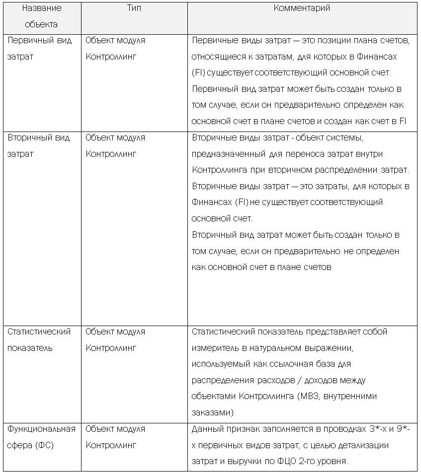Подробное описание объектов модуля Контроллинг приведено в проектном решении КИС_ФХД.ПР.U01. «Ведение основных данных Контроллинга (объектов сбора затрат)».