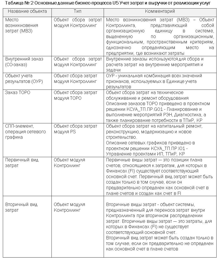 Краткое описание бизнес-процесса U5 Учет затрат и выручки от реализации услуг