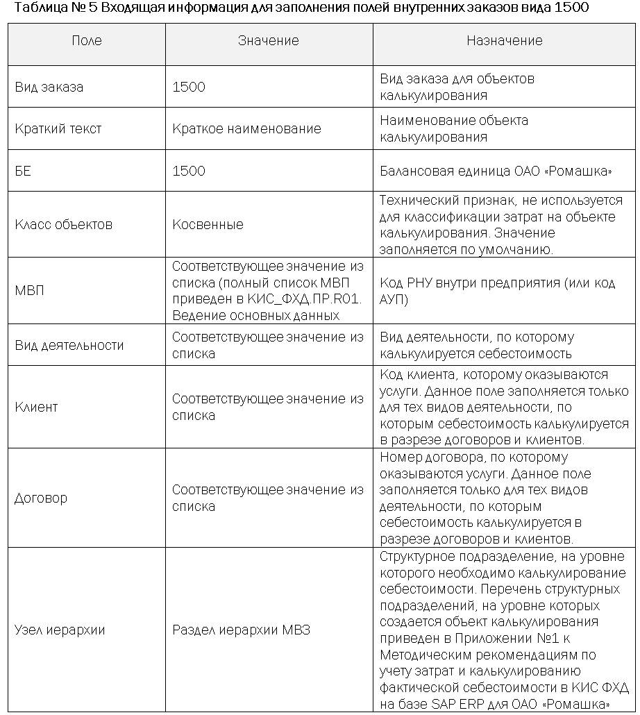 Методические рекомендации по учету затрат и калькулированию фактической себестоимости в КИС ФХД на базе SAP ERP для ОАО «Ромашка»;