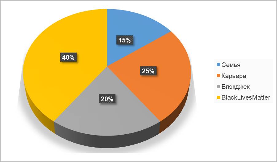 Цели приобрели различные пропорции и формы, что не может осуждаться. Полностью посвятить себя главной – значит пожертвовать остальными. Например, нижерасположенная диаграмма иллюстрирует крупное пожертвование в пользу социального активизма.