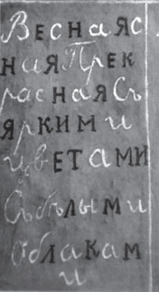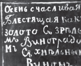27. М. Ларионов. Фрагмент надписей на полотнах из цикла «Времена года»