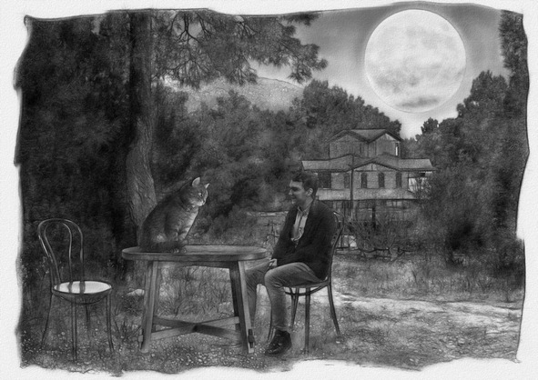 Я поднял взгляд к яростно сиявшему глазу Царицы: «Могущественная, он так невесел, позволь ему прийти в твои объятья и успокоиться?» Ночь молчаливо согласилась, и я, уже не таясь, вышел из своего убежища. Легкой походкой, скользя вдоль лунных лучей, я подошел к одинокому столику и сел напротив мужчины.