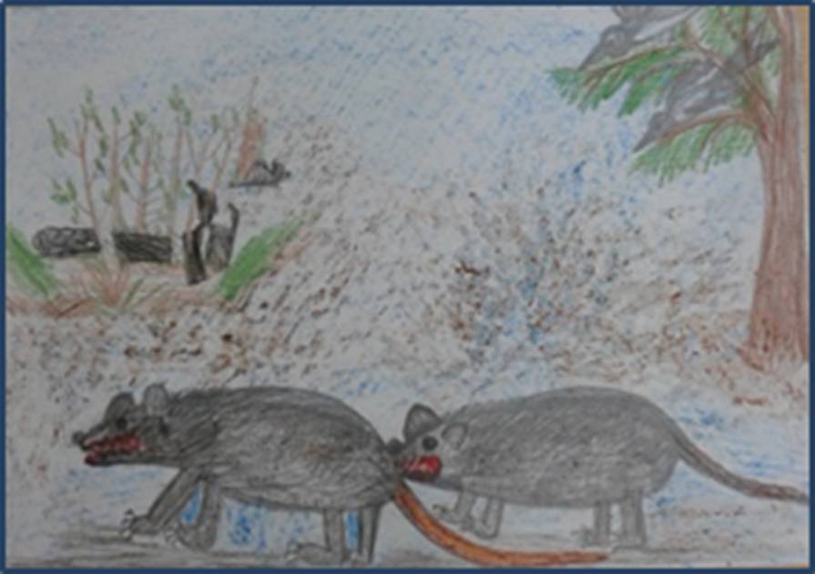 «За мной, торопитесь! – командовала самая крупная крыса с рыжим хвостом. – Скорее! Впереди нас ждет пир, где будет много еды, особенно много яиц и маленьких птенцов. Будет чем поживиться!»
