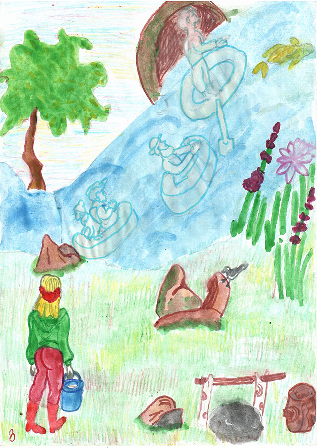 Она с удовольствием стала умываться. Увидев, что ничего страшного с ней не происходит от этой воды, Настя с опаской последовала её примеру. Вытираться было нечем и девушки ждали, пока влага с лица и рук испарится сама, закрыв глаза и повернувшись под ласковые лучи утреннего солнышка.