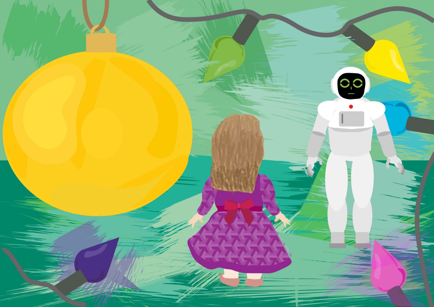 – Ой! – сказала Лея. А робот стал осматривать ёлку и поднял голову вверх.