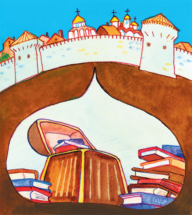 Говорят, что Софья, боявшаяся пожаров в Москве, хранила книги в тайнике под церковью Рождества Богородицы в Кремле. И её внук, Иван Грозный, решил спрятать Либерию от всяких ненастий, врагов и жадных людей в особое место, о котором знали лишь избранные. И это царю с блеском удалось! До сих пор его библиотека будоражит умы кладоискателей, – заинтриговал папа Женя.