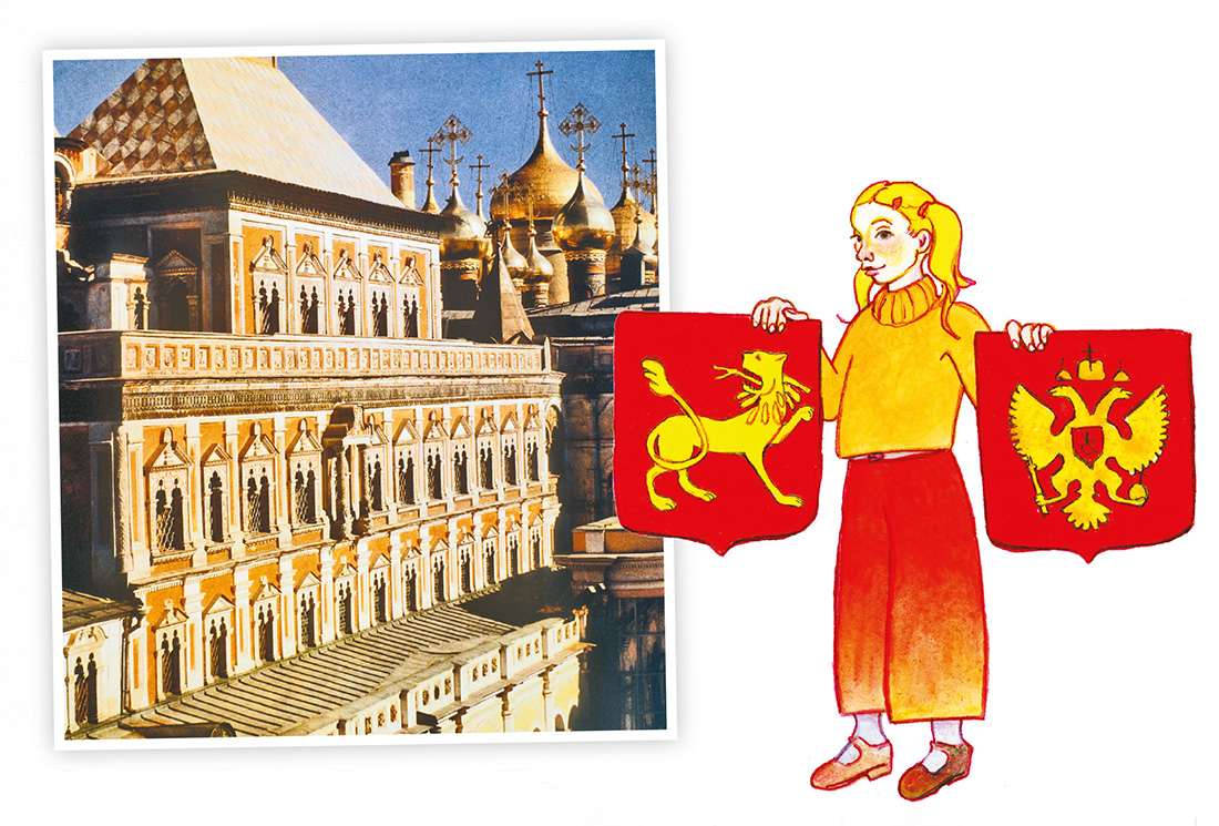 – Конечно! А всё потому, что читаю много книжек. Например, о Теремном дворце. В нём можно увидеть немало изображений и скульптур фантастических львов – символов Владимиро-Суздальской Руси, к которой и относилась Москва. Есть здесь и роспись с двуглавыми орлами, доставшимися нашему государству от Византии.