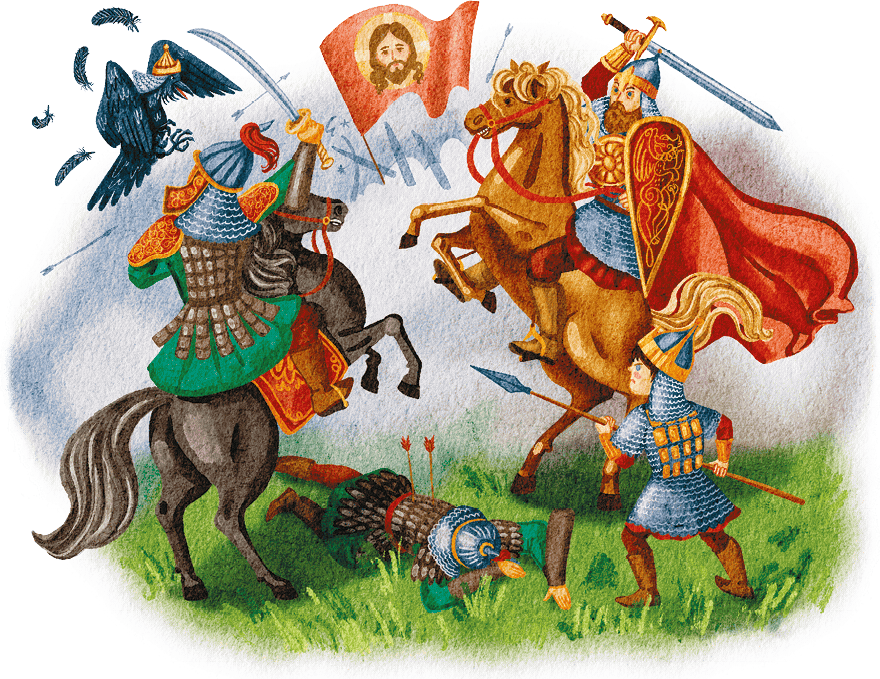 КУЛИКОВСКАЯ БИТВА – знаковое сражение, состоявшееся в 1380 году на Куликовом поле между войском московского князя Дмитрия и большой армией монгольского хана Мамая. На эту битву благословил князя святой Сергий Радонежский. Победа имела огромное значение для освобождения Руси от монгольского ига, а также усиления влияния Московского княжества. После этого Дмитрия стали называть Донским. В 1988 году его канонизировали, он стал святым.