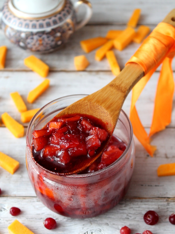 Пробовали ли вы когда-нибудь такое варенье? На мой взгляд, стоит попробовать! Это очень вкусно, варится варенье не долго, поэтому что-то от витаминов тоже остается. Если хотите оставить в варенье все полезные свойства – просто пробейте тыкву с клюквой блендером или перекрутите на мясорубке, и лучше это делать в небольших количествах – чтобы сразу съесть, витамин С он такой – сразу разрушается. Зато минетральный состав никуда не денется – а он в этих ягодах (да-да, я не ошиблась, тыква – тоже ягода, как утверждают некоторые авторы), просто огромен. Тыквы богаты еще и фолиевой, и никотиновой кислотами, минералами (такими, как селен, например, один из врагов онкологии), кроме него в тыкве содержатся К, Са, Na, Mg, Fe (надеюсь, помните название элементов), еще в тыкве много каротина и пектина. Тандем тыквы с клюквой не только богаче по целебным свойствам, но и по вкусу.