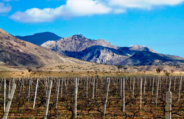 Виноградники – это первое, что встречает туристов на пути в окрестностях города Судака и села Солнечная Долина, где мы, в основном, перемещались. Все пологие склоны гор занимают посадки винограда. Перед нами они предстали в своей первозданной наготе – ровными рядами скрюченных виноградных лоз разного размера в зависимости от возраста и сорта, аккуратно привязанных к колышкам. Это зрелище вызвало сложные чувства! Просто не верилось, что эти карлики скоро превратятся в прекрасные виноградные лианы, которые мы привыкли видеть в летних поездках и на рекламных картинках.