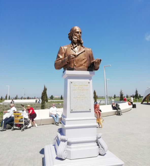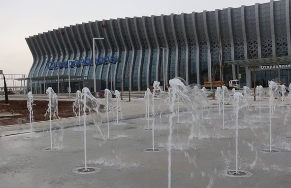 После выхода из красивого, элегантного нового здания аэропорта Симферополя (его называют «Крымской волной» за особенности архитектуры) гостей встречает памятник Ивану Айвазовскому, имя которого в настоящее время носит аэропорт.