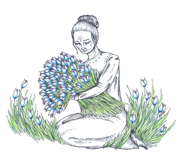 И королева поведала ему о своих бедах. Она честно рассказала, что пришла из другой страны, чтобы спасти свой народ, который по ее вине терпит бедствия и болезни, рассказала о своей глупости и женской гордыне, о том, как она хотела сохранить свою красоту и молодость всеми способами. Незнакомец внимательно слушал, не перебивая. Он лишь помогал ей укладывать цветы в мешок и перетаскивать ношу с места на место. Королеве было просто и легко с этим человеком.