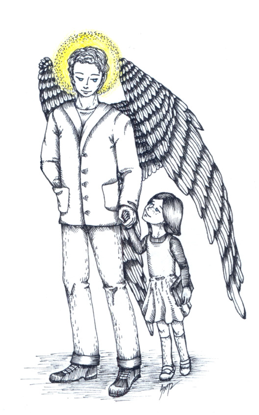 Незаметно прошел день. Ангел и девочка вместе гуляли, потом она спала, и он охранял ее сон, затем ангел проводил ее до дома.