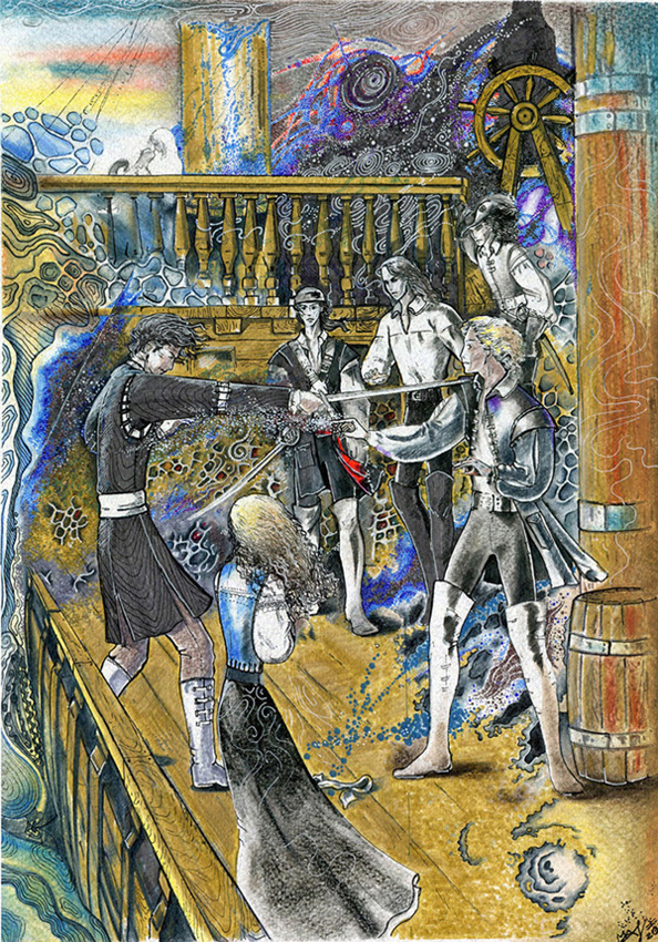 По палубе носились Юрий, Полина, Рита и Роксана. Они пытались поймать фею, но им доставалась лишь разноцветная пыль, играющая зачарованными огнями на одежде и в волосах. Дети весело смеялись, толкаясь. Верно, еще никогда на пиратском корабле так не забавлялись.