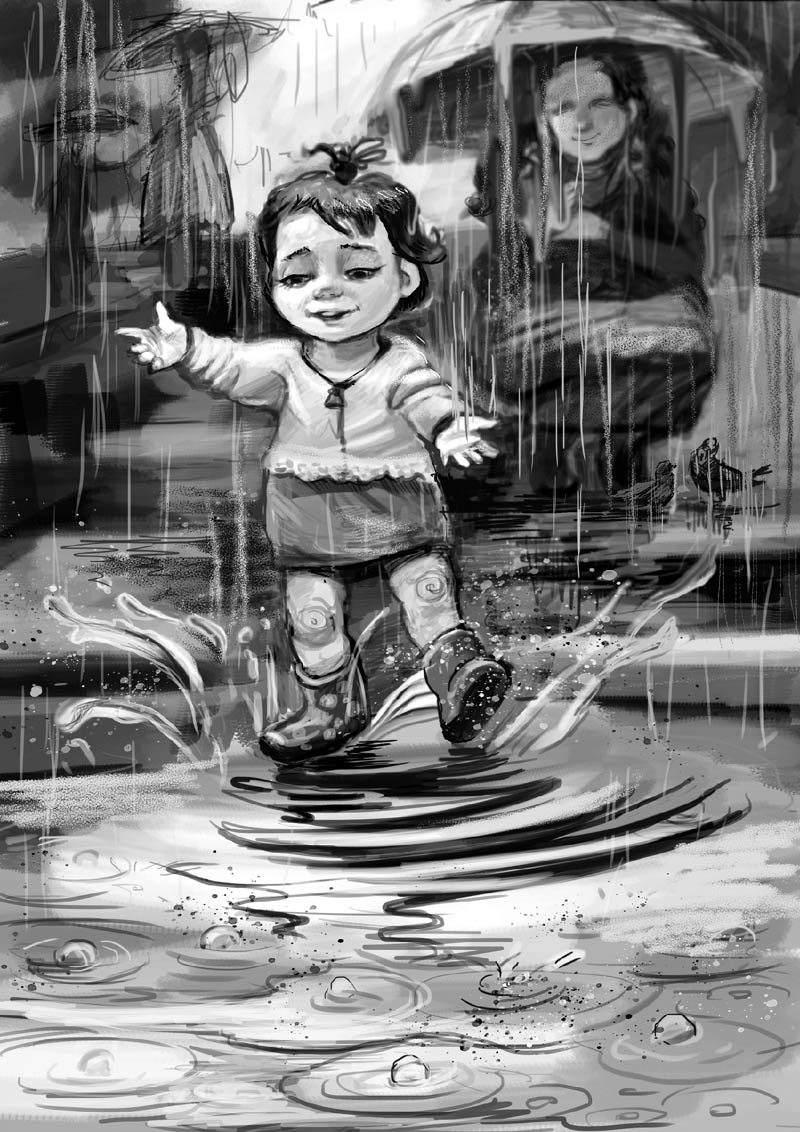 – But I thought that people don’t forget their friends. You remember, Alinka, about five years ago we went for a walk together. I was so glad that you didn't run away from me like other children, hiding under mother’s umbrella. You spread your hands like pink leaves, and looked at the drops, then you began to wash your cheeks and eyes. So funny! Your mother wanted to hide you from me under an umbrella, but you were running away from her and laughing. You squatted down by one of the puddles and looked at how the droplets were splashing into it. I had so much fun with you! We were happy together, like real, real friends. And I presented you a rainbow. The first rainbow of your life. I looked into your eyes and admired their reflection. Don't you remember this?