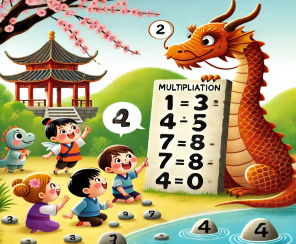 Жил-был в древнем восточном царстве мудрый дракон по имени Хан. Он был старым, но очень добрым, и все дети в деревне любили приходить к нему за знаниями. Однажды Хан решил научить детей таблице умножения.