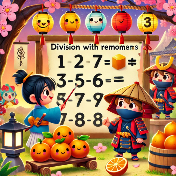 – А вот вам ещё задача, – продолжила Чи. – У меня есть 15 апельсинов, и их нужно разделить между тремя учениками. Сколько апельсинов получит каждый?