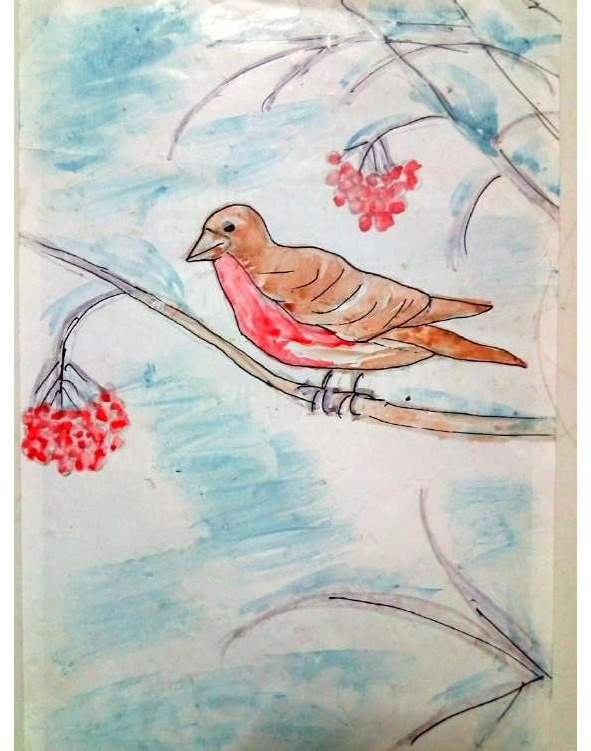 Вдвоем они обошли все ели в округе, но снова не нашли ничьих следов, лишь белочка, стряхнув снег с ветки на их голову, попрыгала прочь, а рядом на рябине птичка клевала замерзшие ягодки.