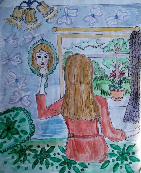 Как сильны травы в лесу,Как красиво цветут они,Так и ты расцветай,День за днем силы набирай,Никогда впредь не хворай.– в этот момент само солнышко улыбнулось в окно. Родители переглянулись: как в этот хмурый день солнышко неожиданно появилось?– Да ты и впрямь особенная, – сказал отец.Девочка с той поры стала поправляться. Уже не болела, ходила в школу, щечки стали нежно-розовыми из вечно бледных, губки стали пухленькими бантиками. И миленькой на лицо она сделалась, а со временем совсем стала красавицей и никого краше и не было в округе. Стали родители даже за нее бояться. Раньше беспокоились, что хворая, а теперь, что кто-то может прийти иукрасть их ненаглядную, ведь избушка их на краю леса находилась, всякие странники мимо ходили. От страха даже большую злую собаку завели.Выросла девочка и превратилась в такую добрую красавицу, рукодельницу, словно фею. Всё-то у неё ладилось, умела вышивать, шить, да такие вещи, что– великих мастеров не было таких изделий.– в этом государстве жили король с королевой, красавицей, но она только и делала, что красовалась и ревновала мужа ко всем подряд., не позволяла ему заглядываться на других, хотела, чтобы она только одна была суперзвездой его очей. Ей хотось всем нравиться, чтоб все восхищались ее красотой. Стоит ей лишь слегка приболеть, как сразу сляжет в постель и десятки докторов суетятся,крутятся вокруг