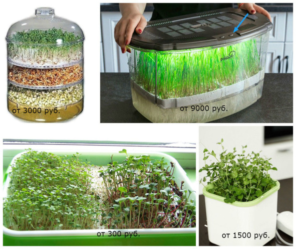 Есть простые гидропонные проращиватели с функцией аэрации жидкости, которые позволяют получать срезку зелени уже через 10—12 часов после посева.