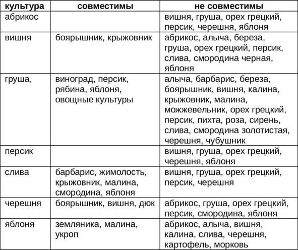При определении места плодовых в саду необходимо также учитывать, какие породы хорошо совместимы друг с другом, а какие плохо переносят соседство с другими плодовыми и декоративными культурами.