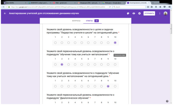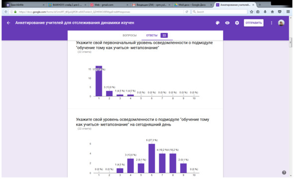Рис. 4. Пример мониторинга уровня развития учителя с помощью опросников, создаваемых в Google Формах