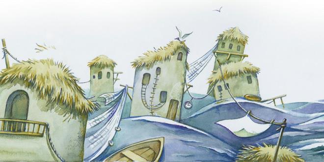 Весь следующий день рокки сидели по домам. Поднялась буря, были большие волны, и домики на воде то приподымались, то опускались. День был тёмным, как вечер, поэтому завтракали при свете. Крокке чем-то нравились такие дни. Они были сонные и читательные. А ещё можно было вообразить, что домики рокков путешествуют и однажды примчатся в неведомые дали, где всё будет новое и неизведанное. Но домики прочно стояли на месте, только мягко поднимались вверх и опускались вниз.