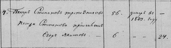 Запись в ревизской сказке за 1834 год по семье Трапездниковых