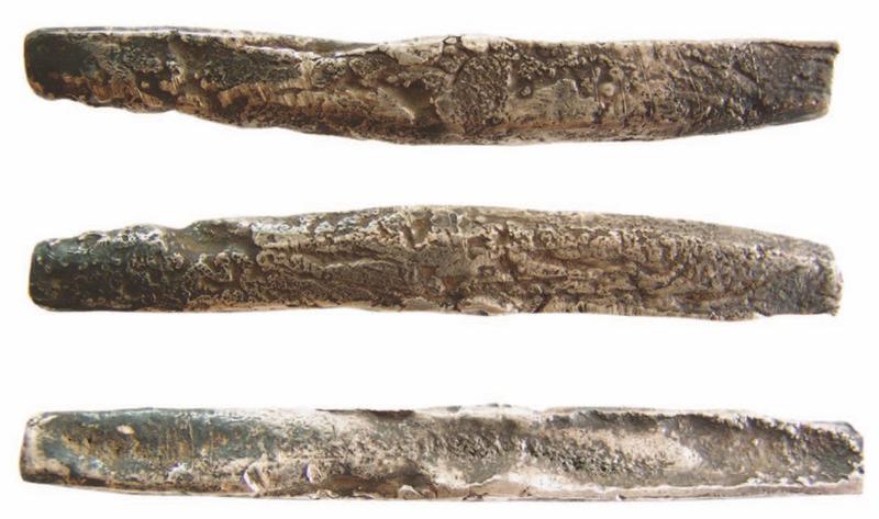Вплоть до монголо-татарского нашествия, то есть до середины XIII столетия, на юго-западе и юге Руси в качестве платежного средства использовались слитки серебра ромбовидной формы и весом около 160 граммов (условно их называют киевскими гривнами). На севере же был более распространен слиток, напоминающий скорее палочку с закругленными концами, весом около 204 граммов (рис. 1.18).