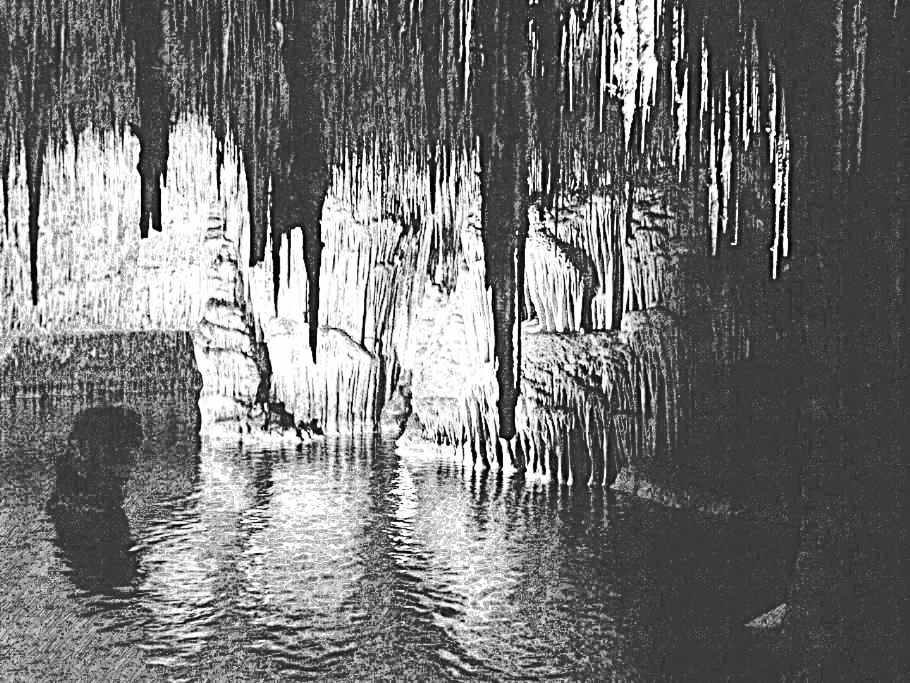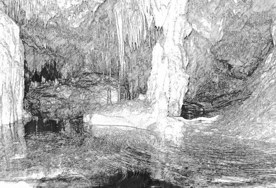 Узкая расщелина вдруг обернулась широким входом. Где-то внизу плескался подземный водоём. Над ними был сводчатый потолок, с которого свисали и светились затейливые сталактиты будто каменные шторы – фантастический рельеф и фигуры, что образовались под действием воды и известняка. Сама природа творила подобно художнику и скульптору, создавая удивительные композиции.