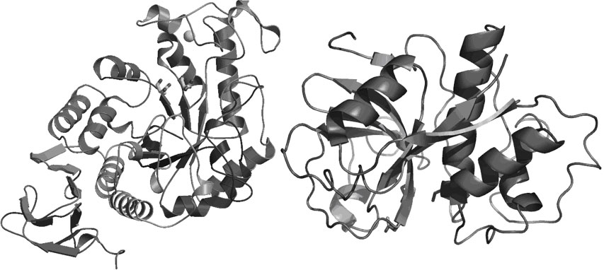 На рисунке 13 изображены следующие ферменты: альфа-амилаза, находящаяся в слюне, которая начинает пищеварение, и энзим папайи.