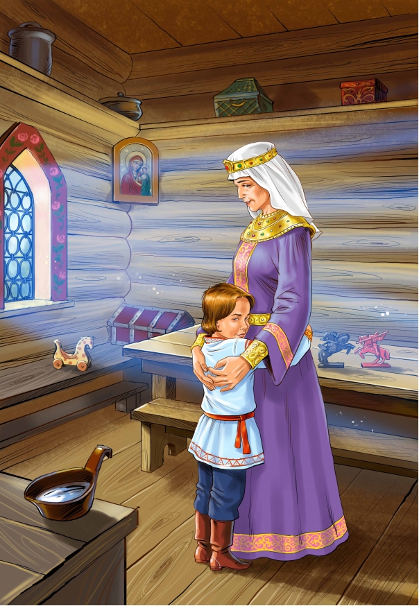 Вот и теперь он гостил у родительницы. Вёл в её покоях битву между двумя воинами-всадниками, искусно вырезанными из дерева. Один был степняк-печенег с маленьким кривым луком и копьём, другой – русский дружинник в кольчуге, с мечом в руке, с подвешенной к седлу палицей.