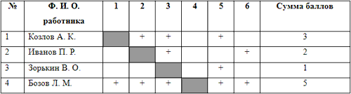 Недостатком применяемого метода становится громоздкость расчетов в случае, если оценивается большое количество кандидатов. В целом количество сравнений определяется по формуле: N(N – 1), где N – число работников.
