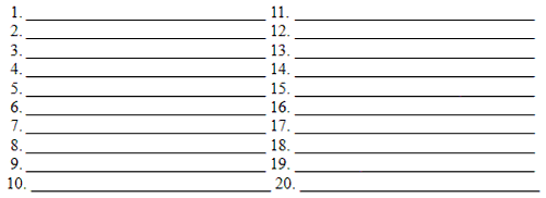 Четвертый способ – альтернативное ранжирование. Для измеряемой характеристики выписывались все кандидаты, которых необходимо было проранжировать. Ранжирование производится в следующим порядке: указываются Ф. И. О. претендующего на должность или рабочее место с наилучшим рейтингом в строке № 1, а с наихудшим рейтингом – в строке № 20, затем включается следующий наилучший кандидат в строке № 2 и наихудший в строке № 19 и т. д., далее продолжается в том же порядке, пока не будут заполнены все строки. К примеру, форма альтернативного ранжирования может выглядеть следующим образом.
