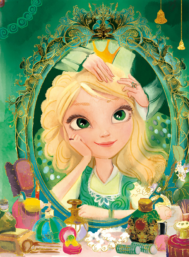 Она всегда приходила по утрам помочь Василисе. Бабушка когда-то была первой красавицей всех пяти царств. Но хотя молодость давно прошла, она не утратила привычки всегда следить за собой и прекрасно выглядеть. Вот и сегодня она вошла в изумрудном платье, усыпанном драгоценными кусочками золота, похожими на камешки. Местные лягушки-ныряльщицы добывали эти камешки со дна чистейших рек и прудов и приносили к дворцу, складывая в специальную чашу на окне. А мастерицы-стрекозы шили для бабушки удивительные наряды. На пальце у гостьи красовался перстень в виде лягушки с алмазными глазками.