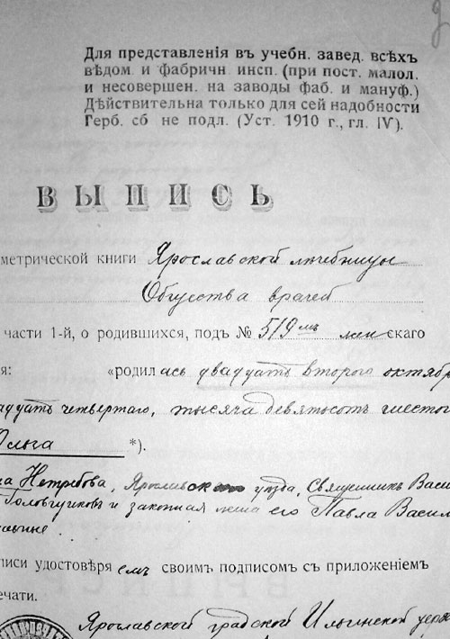 Евдокия – 11 мая 1910 г. Ее восприемники при крещении: священник церкви села Великое Ярославского уезда Николай Иосафович Красносельский и жена священника церкви села Введенского на Волге Екатерина